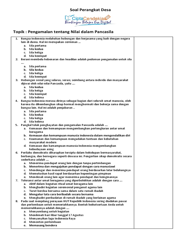 Soal Tes Perangkat Desa 2025: Materi Pancasila dan UUD 1945