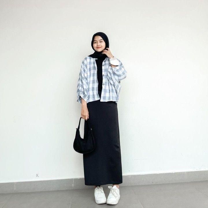 Sebagai perpaduannya, kenakan hijab dan sneakers warna hitam yang senada. OOTD ini akan cocok kamu kenakan untuk acara yang santai ataupun semi formal.