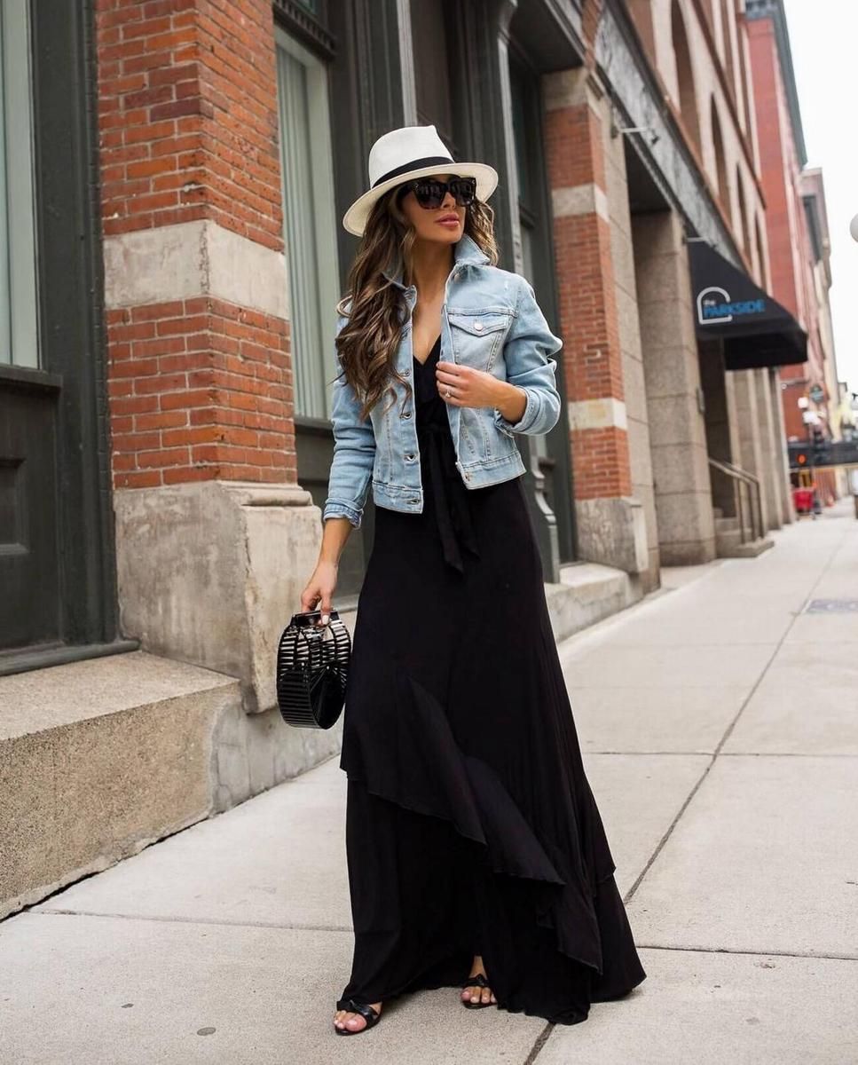 5. Inner Maxi Dress Hitam dan Denim Jacket